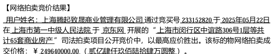 据京东法拍网5月22日披露的拍卖信息显示蜂窝配资,位于上海市闵行区中谊路306号1层等共计65套商业房产的二次拍卖已成交蜂窝配资蜂窝配资,成交价为底价约2.496亿元。