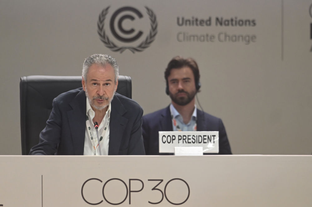 11月21日,在巴西贝伦举行的《联合国气候变化框架公约》第三十次缔约方大会(COP30)上,大会主席多拉戈发言。原计划于21日在巴西贝伦闭幕的COP30当天进入加时阶段。大会主席多拉戈呼吁缔约方团结协作,尽快就部分核心议题达成共识。新华社发(卢西奥·塔沃拉摄)
