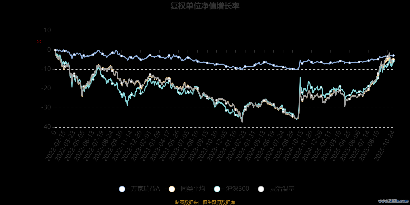 截至10月24日,万家瑞益A近三个月复权单位净值增长率为1.83%,位于同类可比基金1084/1287;近半年复权单位净值增长率为3.95%,位于同类可比基金1169/1287;近一年复权单位净值增长率为3.47%,位于同类可比基金1183/1287;近三年复权单位净值增长率为1.25%,位于同类可比基金945/1286。